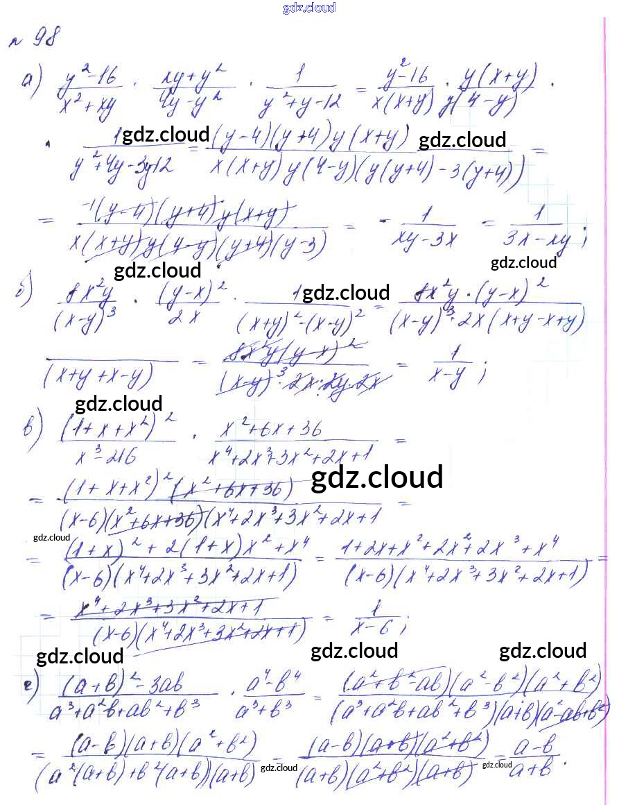 Ответ на задание 98 Учебник Алгебра за 8 (восьмой) класс Макарычев, Миндюк, Нешков, Феоктистов Углубленный уровень 2014 ФГОС онлайн и без номера телефона.