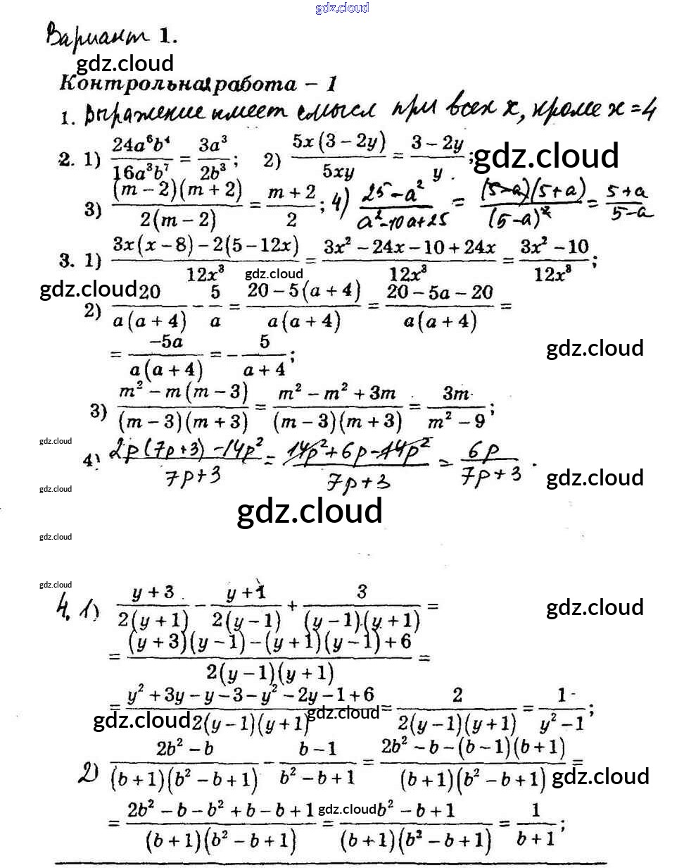 КР-1. Основное свойство рациональной дроби. Сложение и вычитание рациональных дробей Ответы к Контрольным работам по Алгебре 8 класс Дидактические материалы Мерзляк Алгоритм успеха Вентана-граф