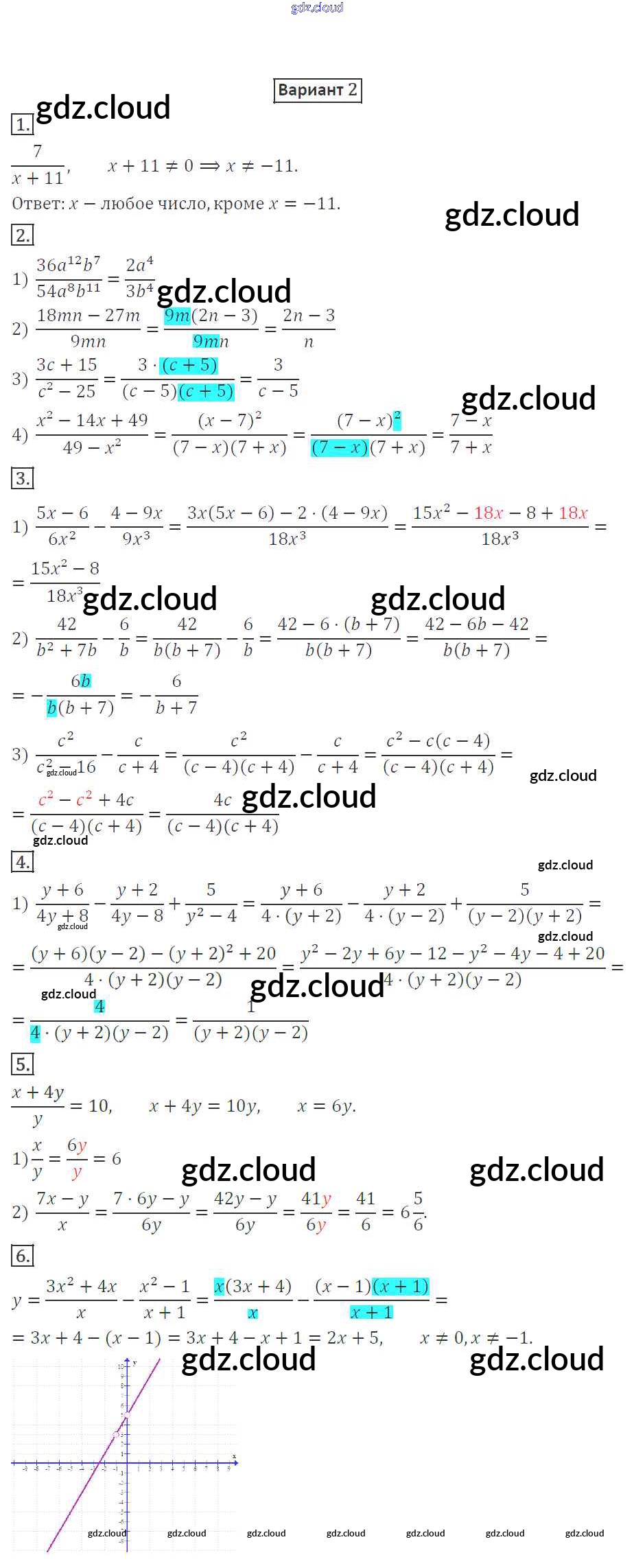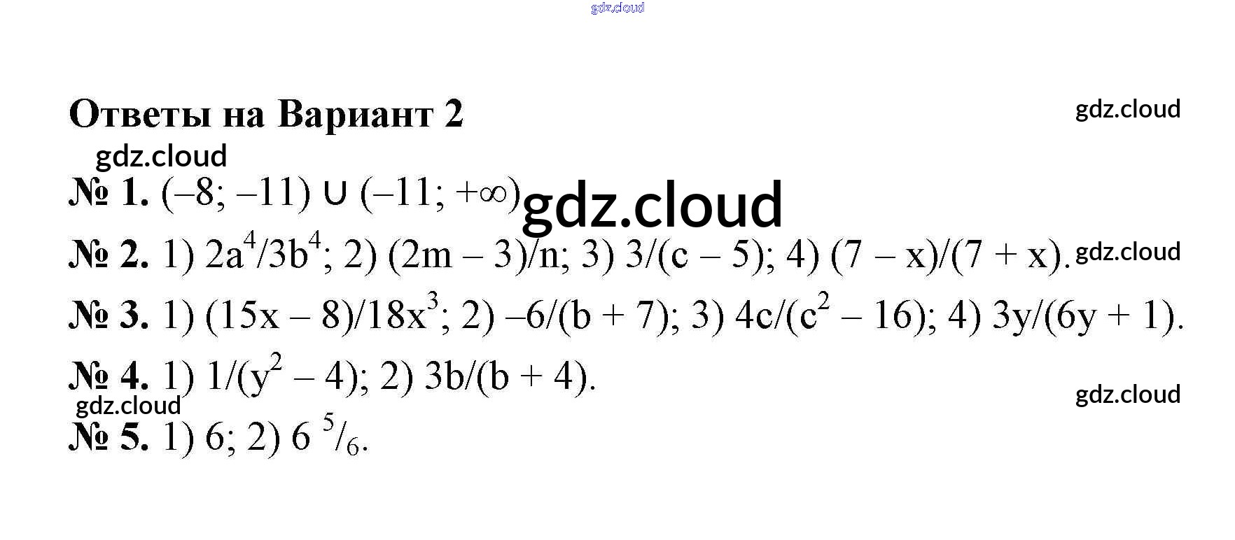 КР-1. Основное свойство рациональной дроби. Сложение и вычитание рациональных дробей Ответы к Контрольным работам по Алгебре 8 класс Дидактические материалы Мерзляк Алгоритм успеха Вентана-граф