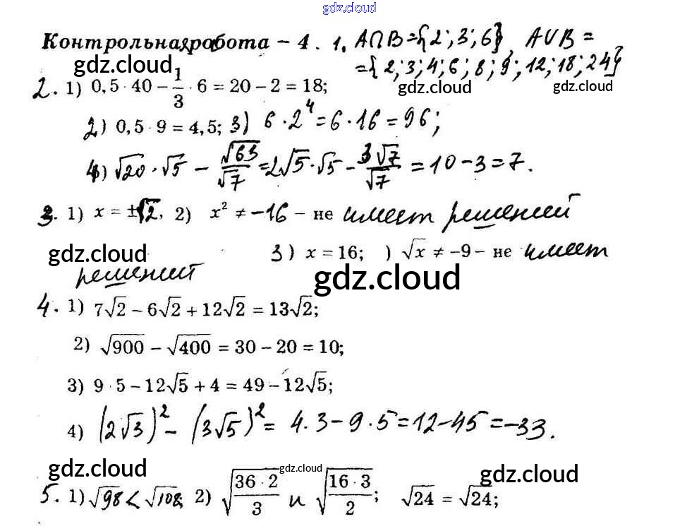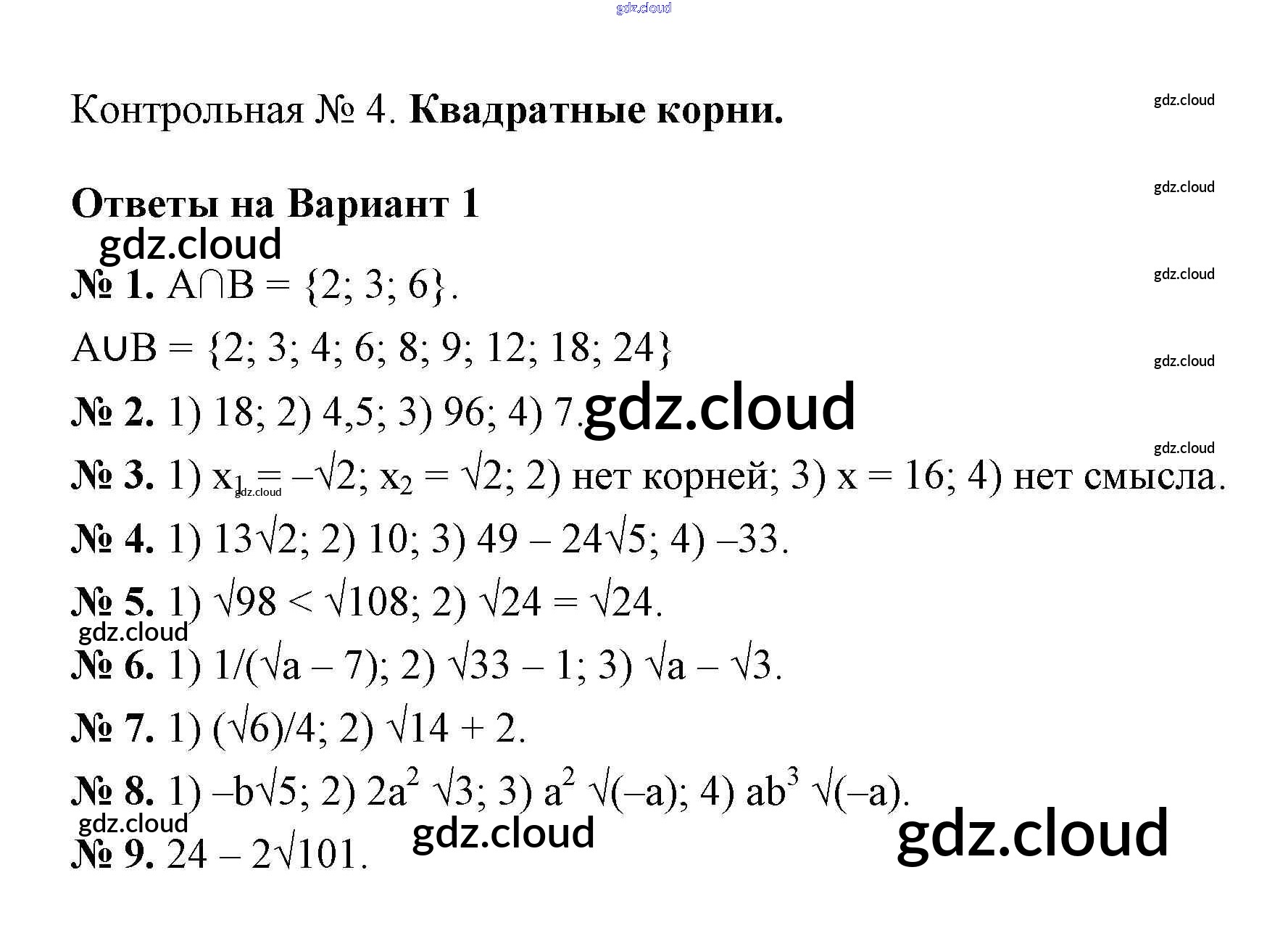 КР-4. Квадратные корни Ответы к Контрольным работам по Алгебре 8 класс Дидактические материалы Мерзляк Алгоритм успеха Вентана-граф