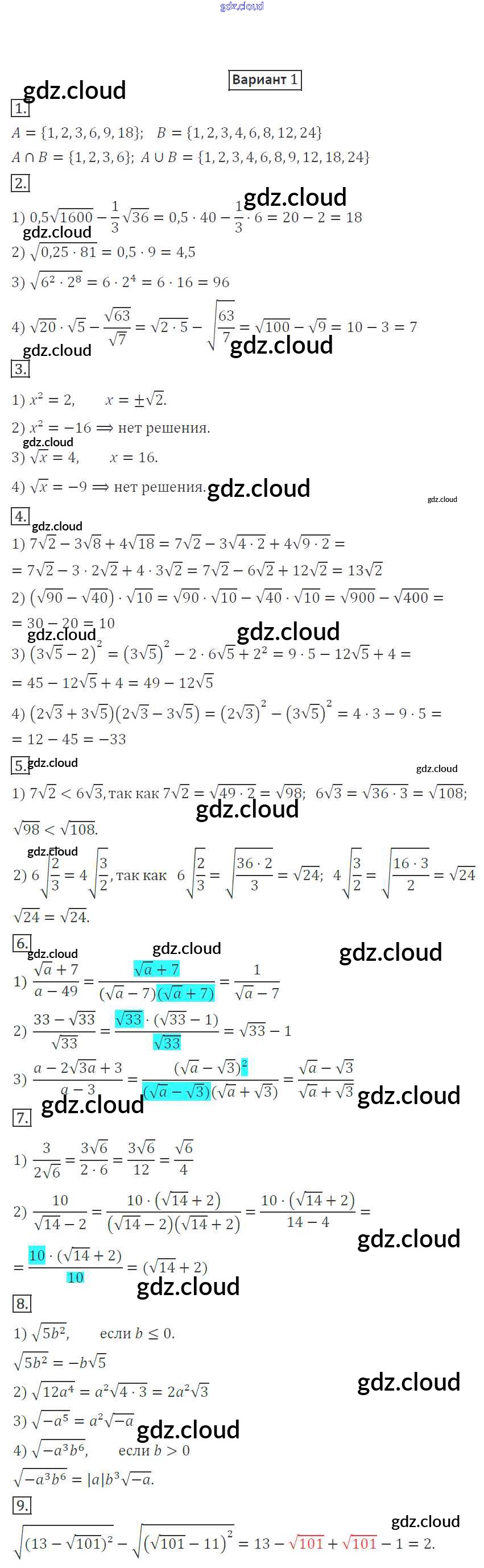Ответ на задание вариант 1 Дидактические материалы Алгебра за 8 (восьмой) класс Мерзляк, Полонский, Рябинович, Якир Алгоритм успеха 2016