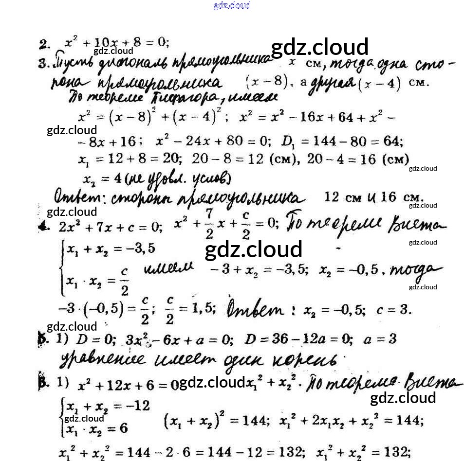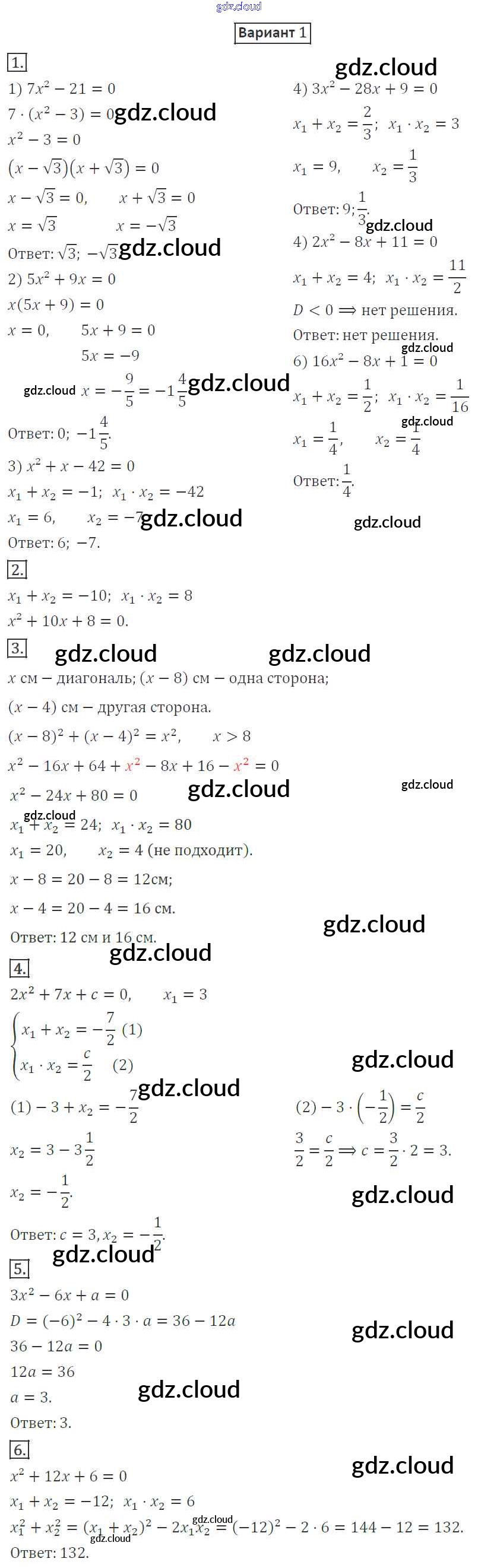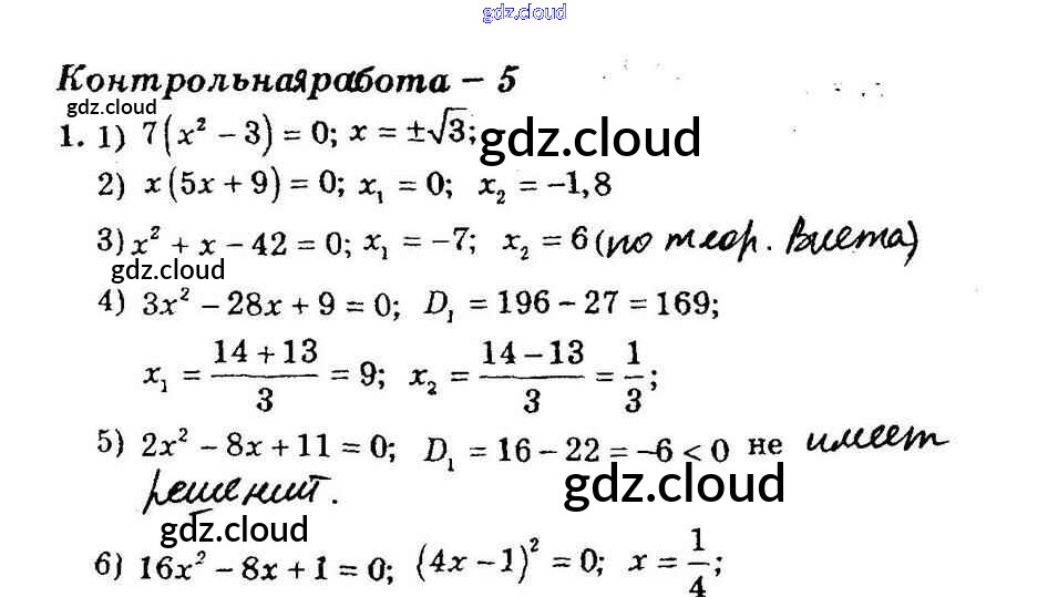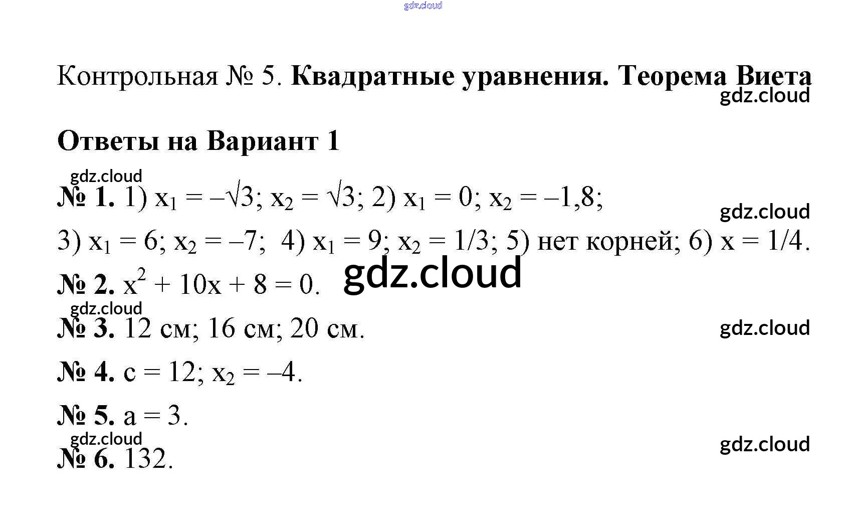 КР-5. Квадратные уравнения. Теорема Виета Ответы к Контрольным работам по Алгебре 8 класс Дидактические материалы Мерзляк Алгоритм успеха Вентана-граф