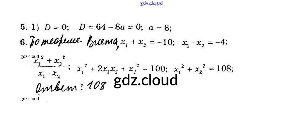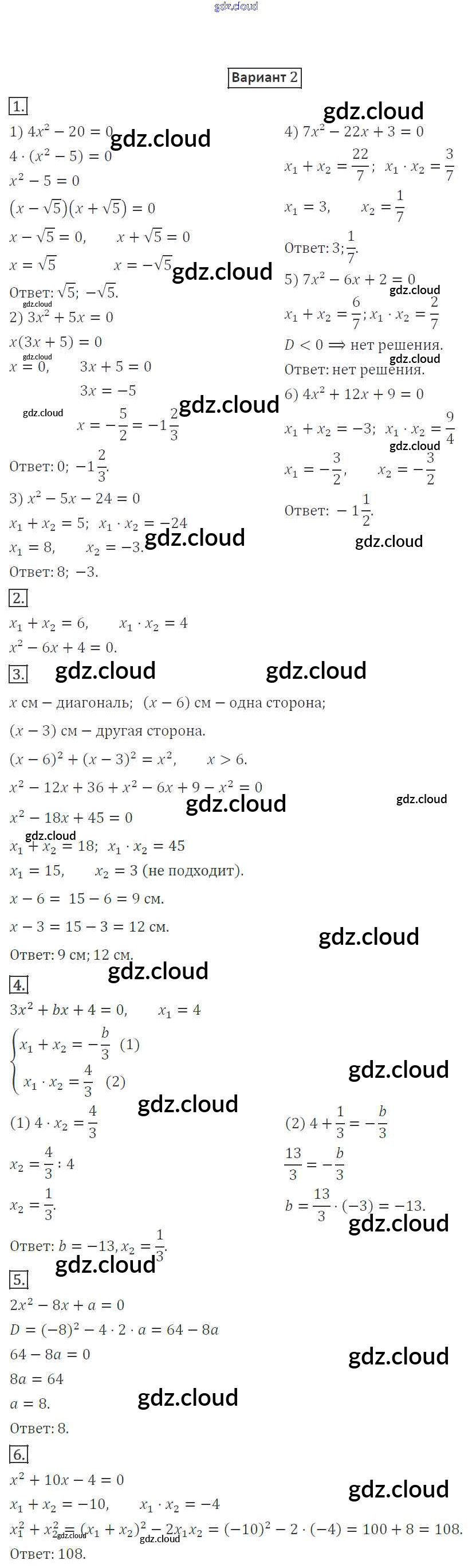 КР-5. Квадратные уравнения. Теорема Виета Ответы к Контрольным работам по Алгебре 8 класс Дидактические материалы Мерзляк Алгоритм успеха Вентана-граф