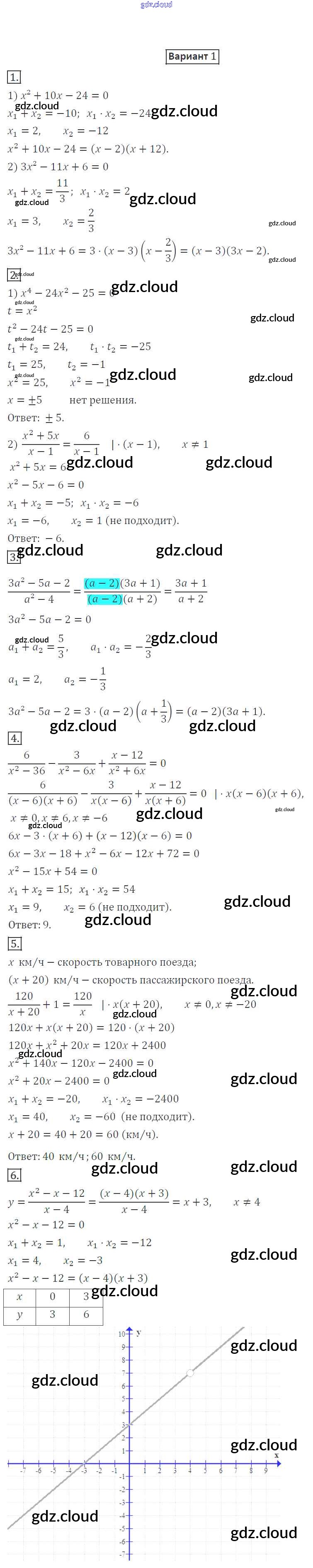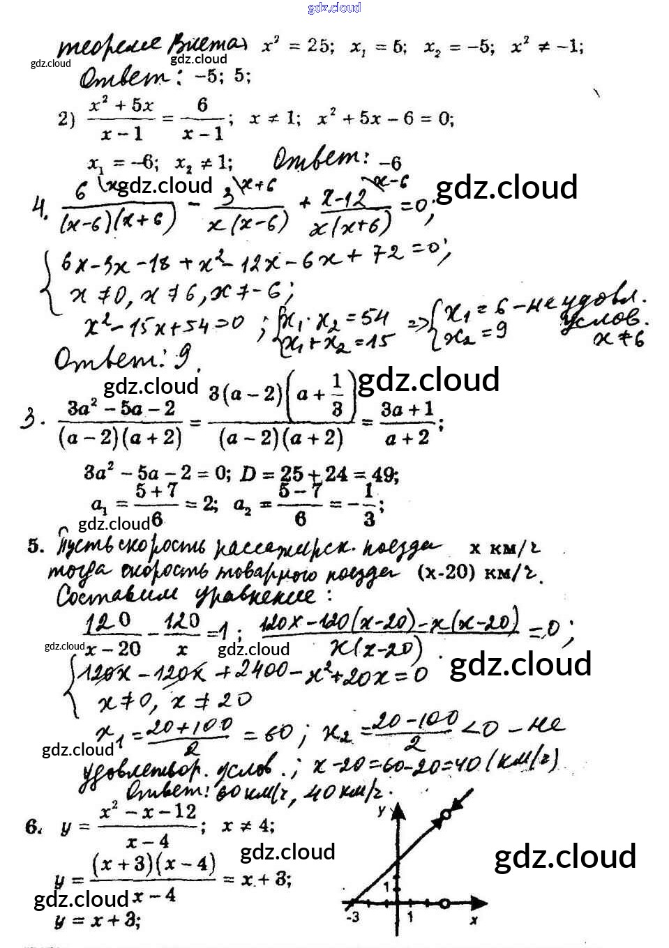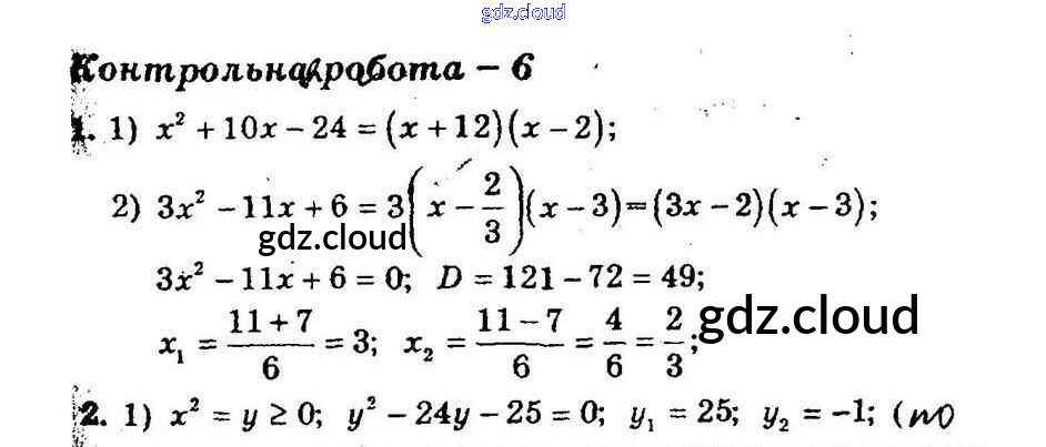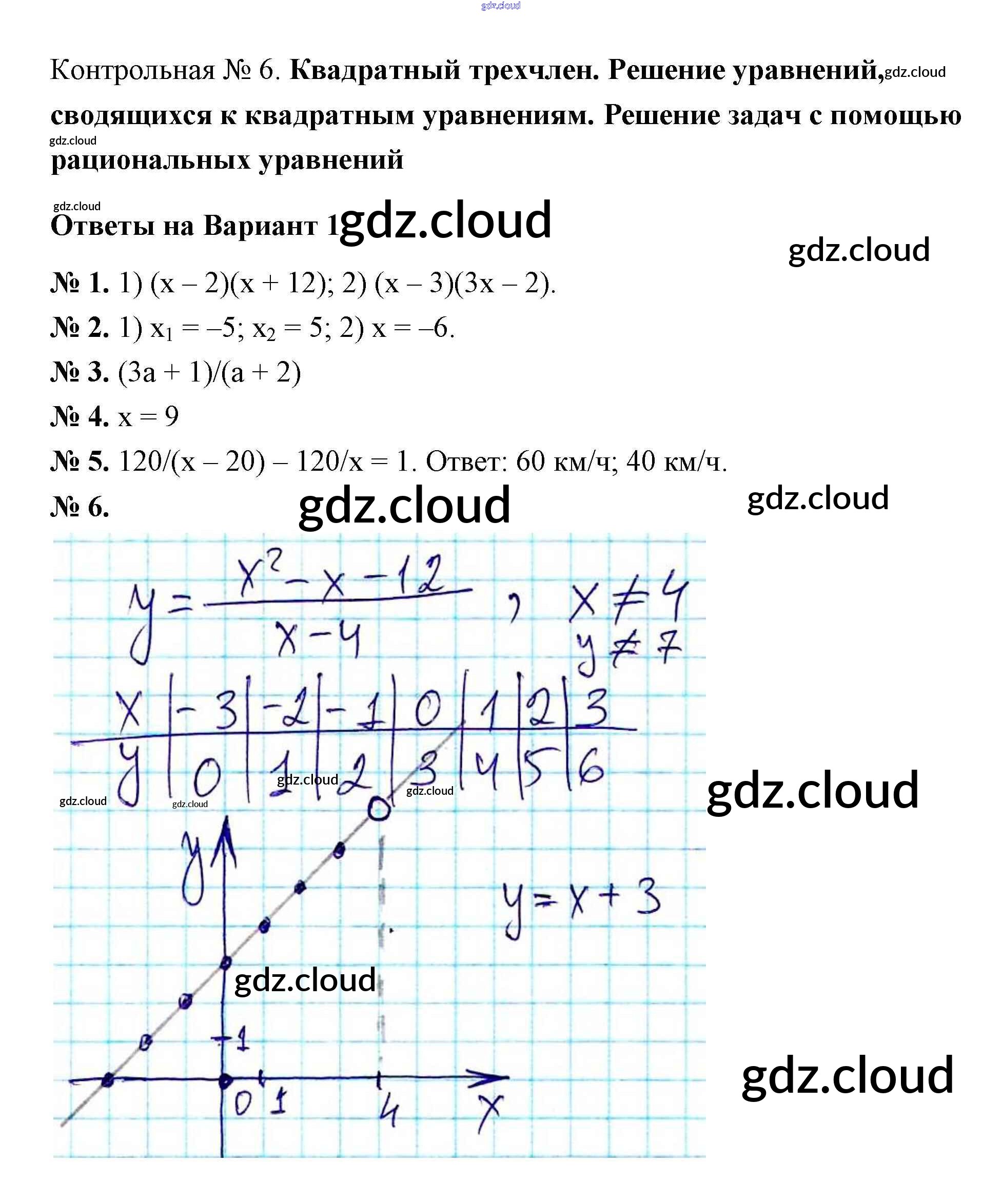 КР-6. Квадратный трехчлен. Решение уравнений, сводящихся к квадратным уравнениям. Решение задач с помощью рациональных уравнений Ответы к Контрольным работам по Алгебре 8 класс Дидактические материалы Мерзляк Алгоритм успеха Вентана-граф