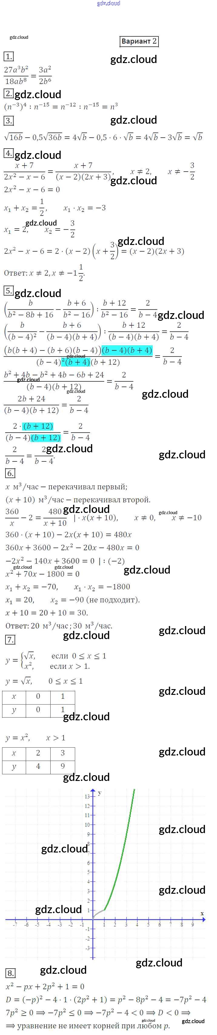 Ответ на задание вариант 2 Дидактические материалы Алгебра за 8 (восьмой) класс Мерзляк, Полонский, Рябинович, Якир Алгоритм успеха 2016
