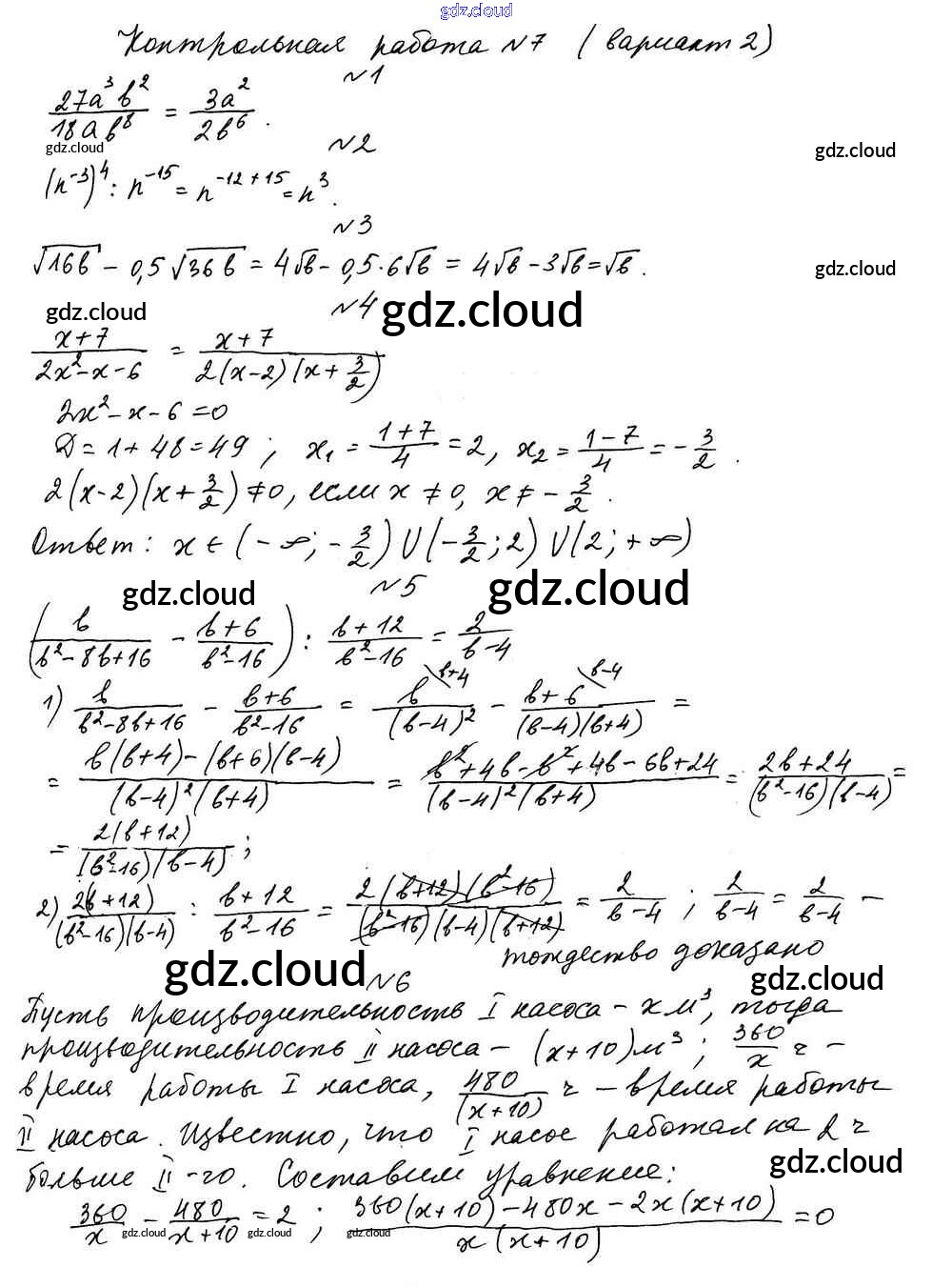 КР-7. Обобщение и систематизация знаний учащихся Ответы к Контрольным работам по Алгебре 8 класс Дидактические материалы Мерзляк Алгоритм успеха Вентана-граф