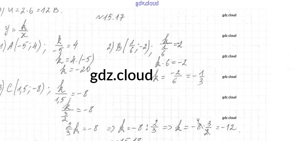 §15. Функция y=k/x и ее график Ответы к Главе 2. Рациональные выражения по Алгебре 8 класс Учебник Мерзляк Алгоритм успеха Углубленный уровень Вентана-граф