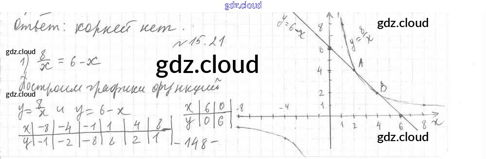 §15. Функция y=k/x и ее график Ответы к Главе 2. Рациональные выражения по Алгебре 8 класс Учебник Мерзляк Алгоритм успеха Углубленный уровень Вентана-граф
