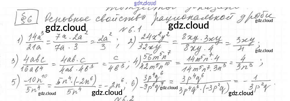 §6. Основное свойство рациональной дроби Ответы к Главе 2. Рациональные выражения по Алгебре 8 класс Учебник Мерзляк Алгоритм успеха Углубленный уровень Вентана-граф