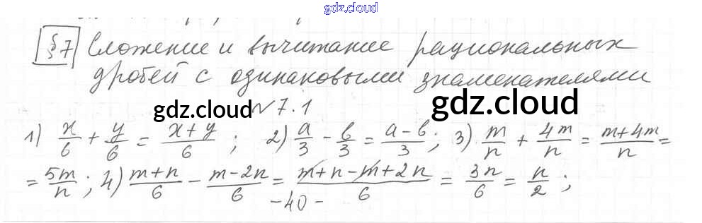 §7. Сложение и вычитание рациональных дробей с одинаковыми знаменателями Ответы к Главе 2. Рациональные выражения по Алгебре 8 класс Учебник Мерзляк Алгоритм успеха Углубленный уровень Вентана-граф