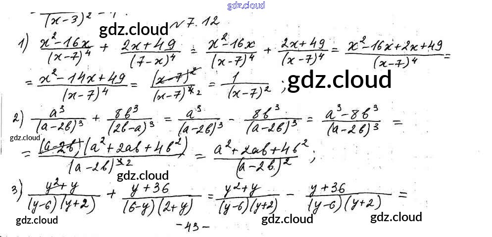 §7. Сложение и вычитание рациональных дробей с одинаковыми знаменателями Ответы к Главе 2. Рациональные выражения по Алгебре 8 класс Учебник Мерзляк Алгоритм успеха Углубленный уровень Вентана-граф
