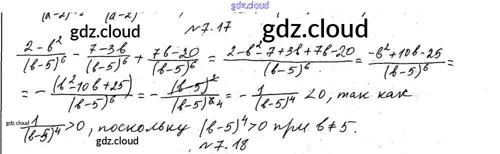 §7. Сложение и вычитание рациональных дробей с одинаковыми знаменателями Ответы к Главе 2. Рациональные выражения по Алгебре 8 класс Учебник Мерзляк Алгоритм успеха Углубленный уровень Вентана-граф