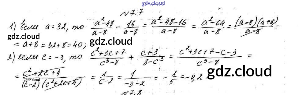 §7. Сложение и вычитание рациональных дробей с одинаковыми знаменателями Ответы к Главе 2. Рациональные выражения по Алгебре 8 класс Учебник Мерзляк Алгоритм успеха Углубленный уровень Вентана-граф