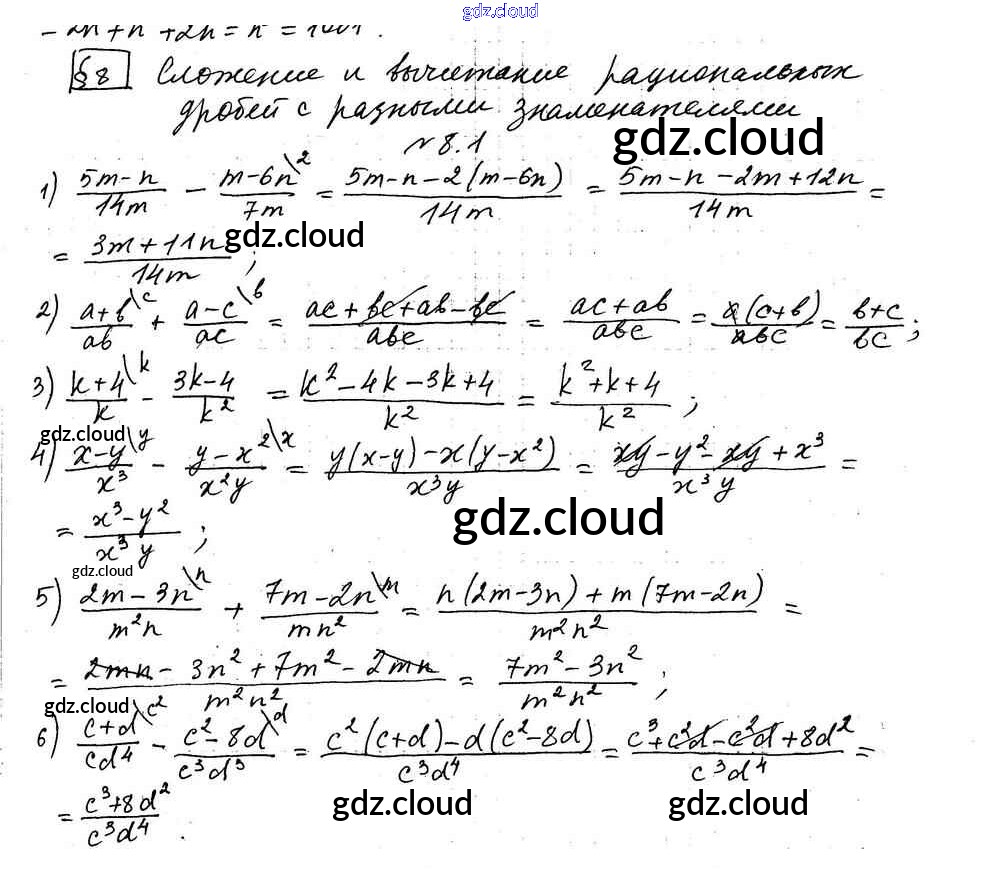 §8. Сложение и вычитание рациональных дробей с разными знаменателями Ответы к Главе 2. Рациональные выражения по Алгебре 8 класс Учебник Мерзляк Алгоритм успеха Углубленный уровень Вентана-граф