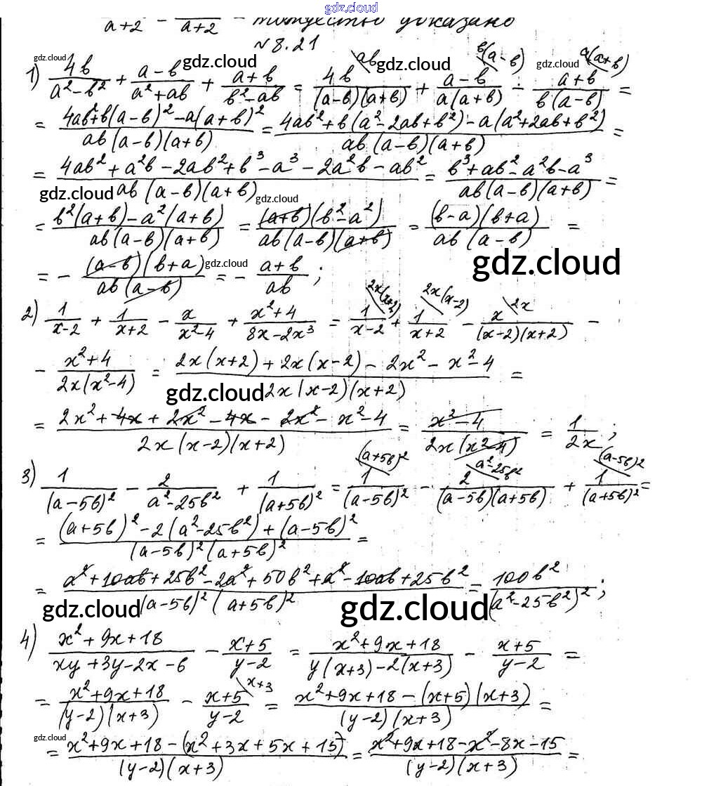 §8. Сложение и вычитание рациональных дробей с разными знаменателями Ответы к Главе 2. Рациональные выражения по Алгебре 8 класс Учебник Мерзляк Алгоритм успеха Углубленный уровень Вентана-граф
