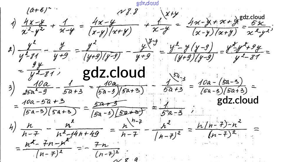 §8. Сложение и вычитание рациональных дробей с разными знаменателями Ответы к Главе 2. Рациональные выражения по Алгебре 8 класс Учебник Мерзляк Алгоритм успеха Углубленный уровень Вентана-граф