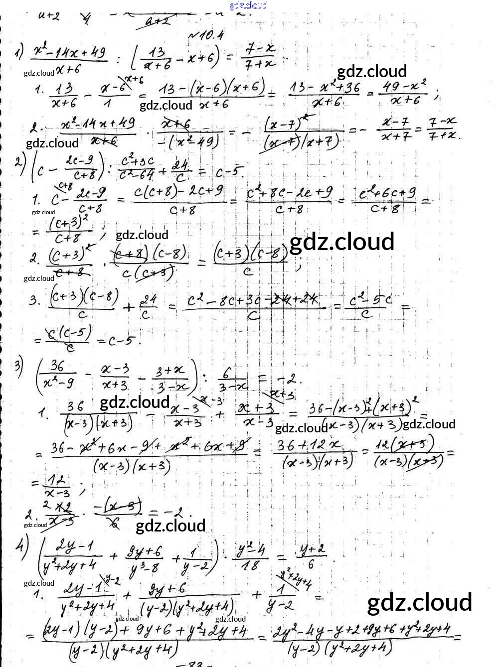 §10. Тождественные преобразования рациональных выражений Ответы к Главе 2. Рациональные выражения по Алгебре 8 класс Учебник Мерзляк Алгоритм успеха Углубленный уровень Вентана-граф