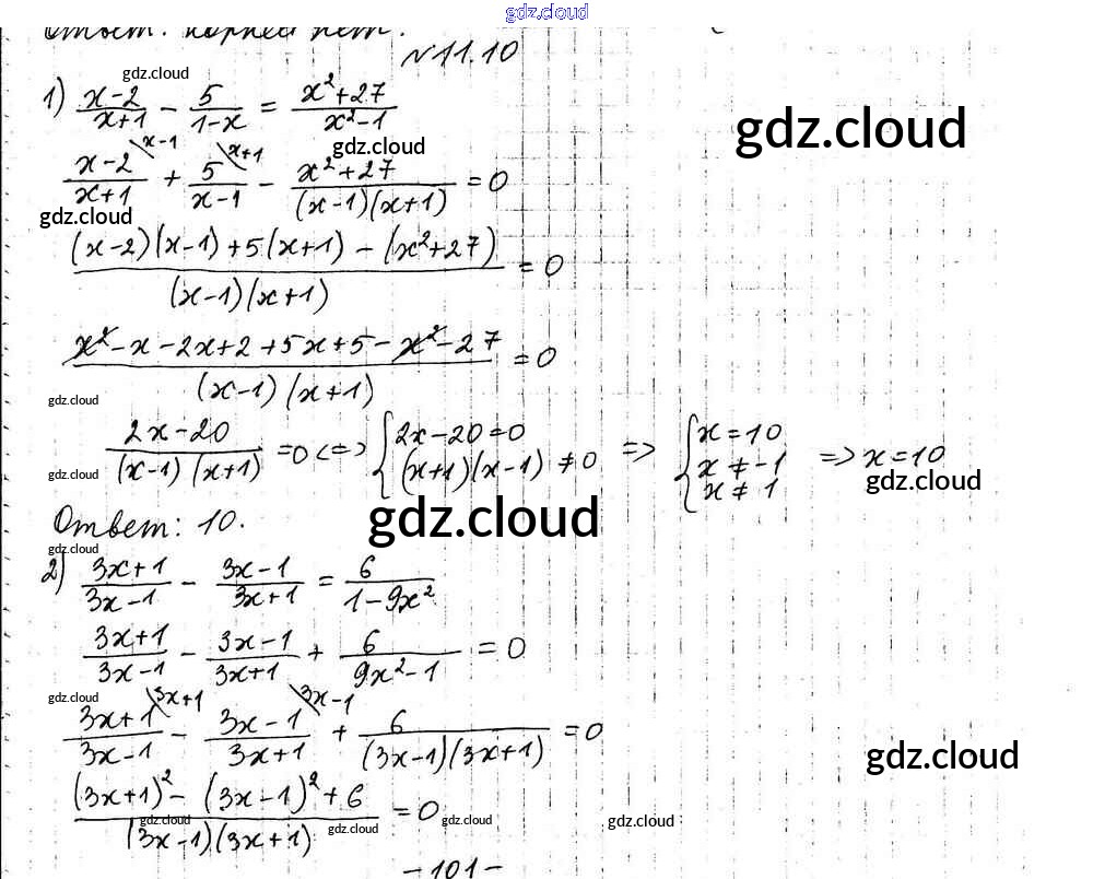 §11. Равносильные уравнения Ответы к Главе 2. Рациональные выражения по Алгебре 8 класс Учебник Мерзляк Алгоритм успеха Углубленный уровень Вентана-граф