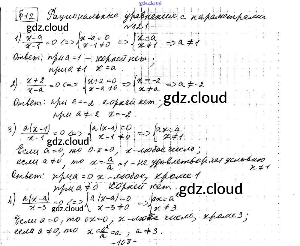 §12. Рациональные уравнения с параметрами Ответы к Главе 2. Рациональные выражения по Алгебре 8 класс Учебник Мерзляк Алгоритм успеха Углубленный уровень Вентана-граф