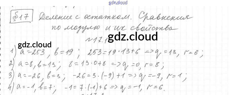 §17. деление с остатком Ответы к Главе 3. Основы теории делимости по Алгебре 8 класс Учебник Мерзляк Алгоритм успеха Углубленный уровень Вентана-граф