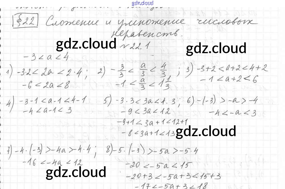 §22. Сложение и умножение числовых неравенств Ответы к Главе 4. Неравенства по Алгебре 8 класс Учебник Мерзляк Алгоритм успеха Углубленный уровень Вентана-граф