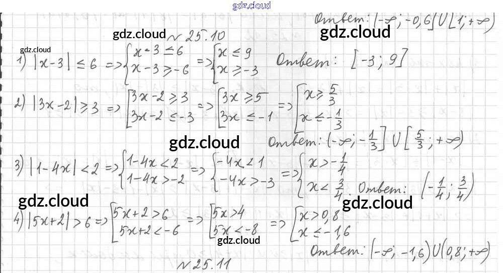 §25. Уравнения и неравенства, содержащие знак модуля Ответы к Главе 4. Неравенства по Алгебре 8 класс Учебник Мерзляк Алгоритм успеха Углубленный уровень Вентана-граф
