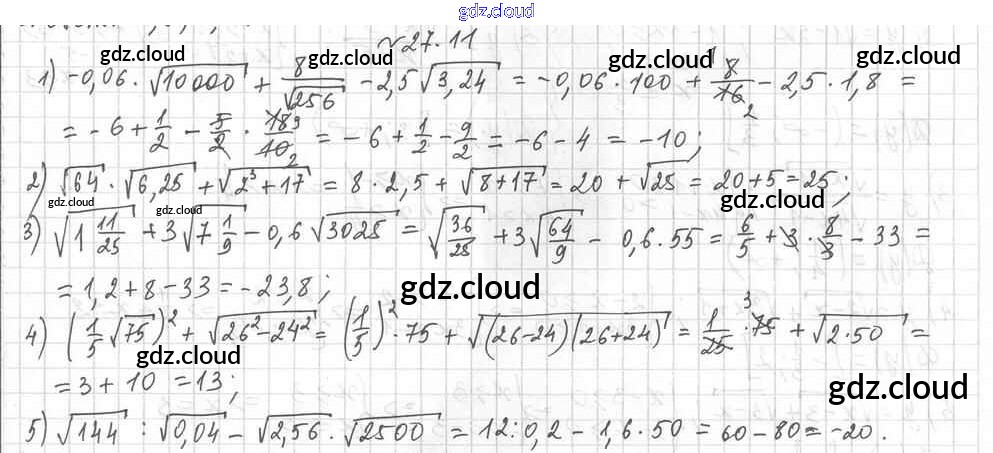 §27. Квадратные корни Ответы к Главе 5. Квадратные корни. Действительные числа по Алгебре 8 класс Учебник Мерзляк Алгоритм успеха Углубленный уровень Вентана-граф