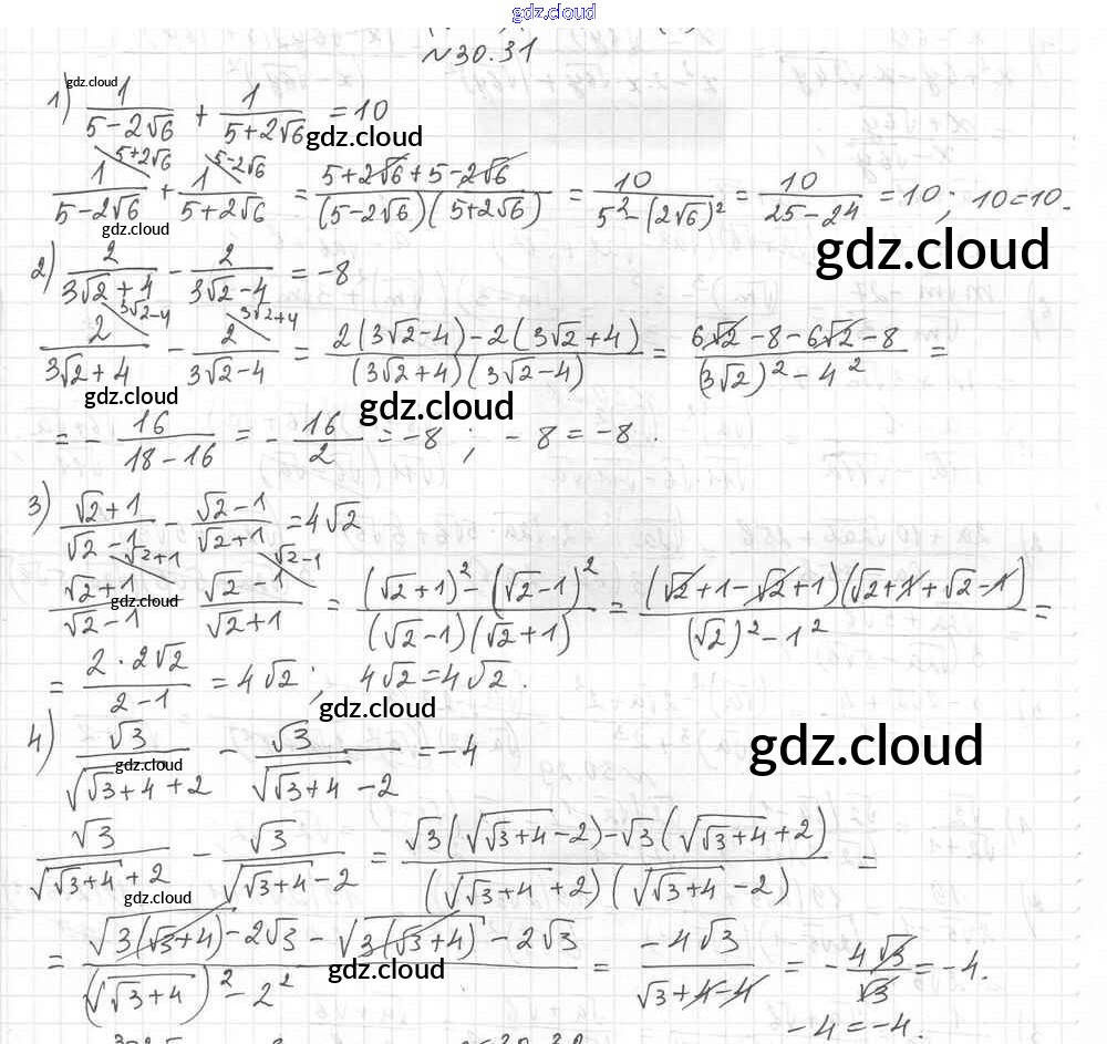 §30. Тождественные преобразования выражений, содержащих арифметические квадратные корни Ответы к Главе 5. Квадратные корни. Действительные числа по Алгебре 8 класс Учебник Мерзляк Алгоритм успеха Углубленный уровень Вентана-граф