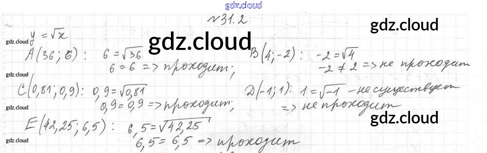 §31. Функция y=√x и ее график Ответы к Главе 5. Квадратные корни. Действительные числа по Алгебре 8 класс Учебник Мерзляк Алгоритм успеха Углубленный уровень Вентана-граф