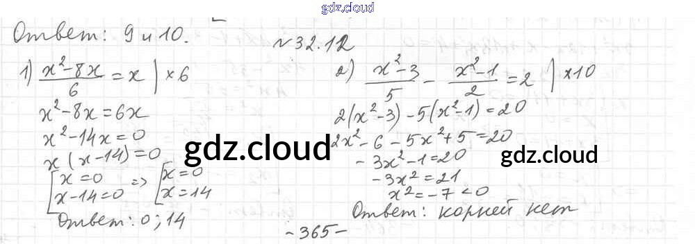 §32. Квадратные уравнения Ответы к Главе 6. Квадратные уравнения по Алгебре 8 класс Учебник Мерзляк Алгоритм успеха Углубленный уровень Вентана-граф