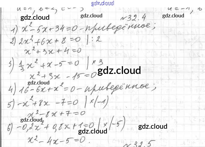 §32. Квадратные уравнения Ответы к Главе 6. Квадратные уравнения по Алгебре 8 класс Учебник Мерзляк Алгоритм успеха Углубленный уровень Вентана-граф