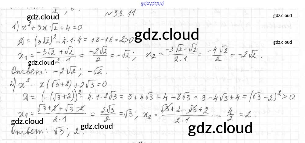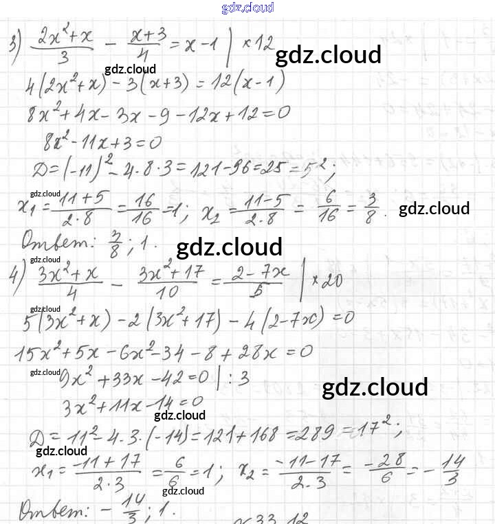 §33. Формула корней квадратного уравнения Ответы к Главе 6. Квадратные уравнения по Алгебре 8 класс Учебник Мерзляк Алгоритм успеха Углубленный уровень Вентана-граф