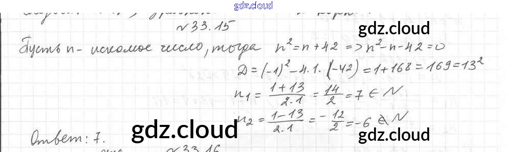 §33. Формула корней квадратного уравнения Ответы к Главе 6. Квадратные уравнения по Алгебре 8 класс Учебник Мерзляк Алгоритм успеха Углубленный уровень Вентана-граф