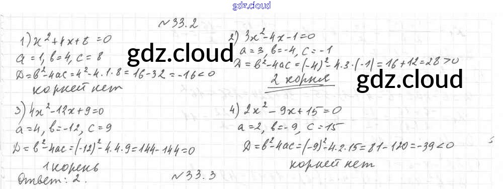 §33. Формула корней квадратного уравнения Ответы к Главе 6. Квадратные уравнения по Алгебре 8 класс Учебник Мерзляк Алгоритм успеха Углубленный уровень Вентана-граф