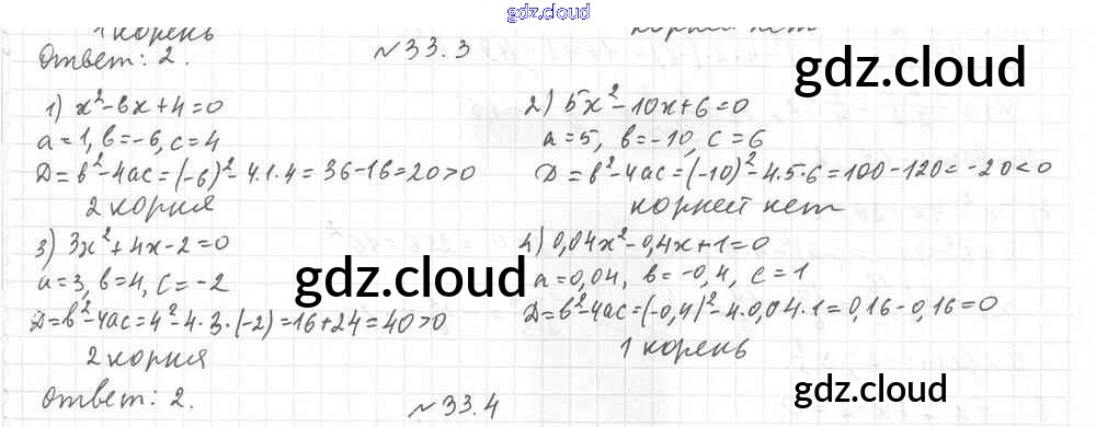 §33. Формула корней квадратного уравнения Ответы к Главе 6. Квадратные уравнения по Алгебре 8 класс Учебник Мерзляк Алгоритм успеха Углубленный уровень Вентана-граф