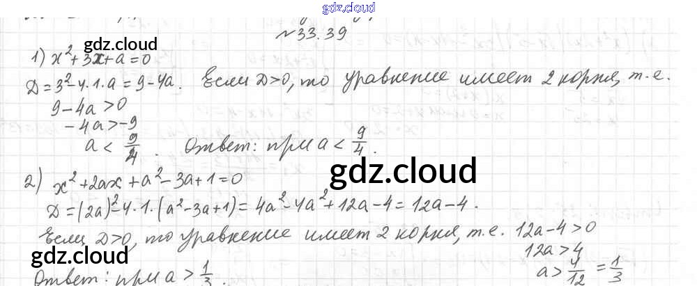 §33. Формула корней квадратного уравнения Ответы к Главе 6. Квадратные уравнения по Алгебре 8 класс Учебник Мерзляк Алгоритм успеха Углубленный уровень Вентана-граф