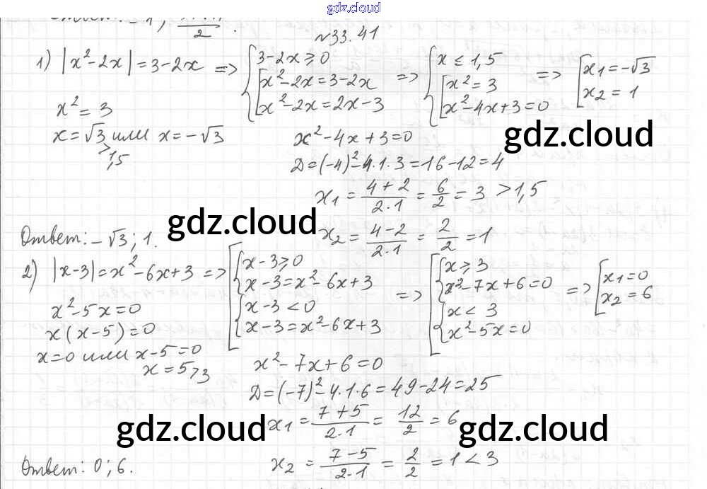 §33. Формула корней квадратного уравнения Ответы к Главе 6. Квадратные уравнения по Алгебре 8 класс Учебник Мерзляк Алгоритм успеха Углубленный уровень Вентана-граф