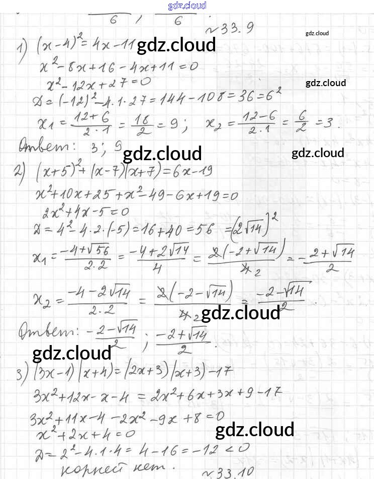 §33. Формула корней квадратного уравнения Ответы к Главе 6. Квадратные уравнения по Алгебре 8 класс Учебник Мерзляк Алгоритм успеха Углубленный уровень Вентана-граф