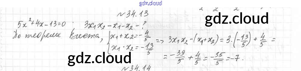 §34. Теорема Виета Ответы к Главе 6. Квадратные уравнения по Алгебре 8 класс Учебник Мерзляк Алгоритм успеха Углубленный уровень Вентана-граф