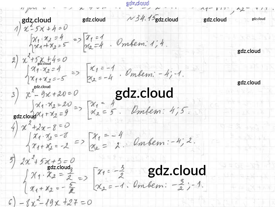 §34. Теорема Виета Ответы к Главе 6. Квадратные уравнения по Алгебре 8 класс Учебник Мерзляк Алгоритм успеха Углубленный уровень Вентана-граф