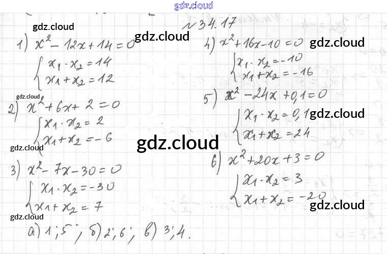 §34. Теорема Виета Ответы к Главе 6. Квадратные уравнения по Алгебре 8 класс Учебник Мерзляк Алгоритм успеха Углубленный уровень Вентана-граф