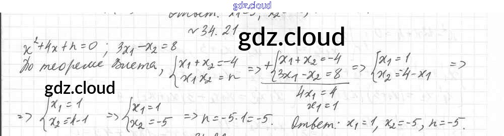 §34. Теорема Виета Ответы к Главе 6. Квадратные уравнения по Алгебре 8 класс Учебник Мерзляк Алгоритм успеха Углубленный уровень Вентана-граф