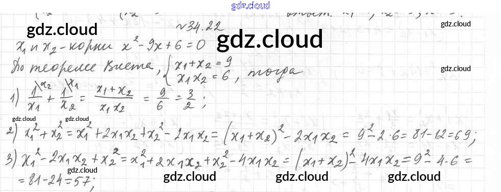 §34. Теорема Виета Ответы к Главе 6. Квадратные уравнения по Алгебре 8 класс Учебник Мерзляк Алгоритм успеха Углубленный уровень Вентана-граф