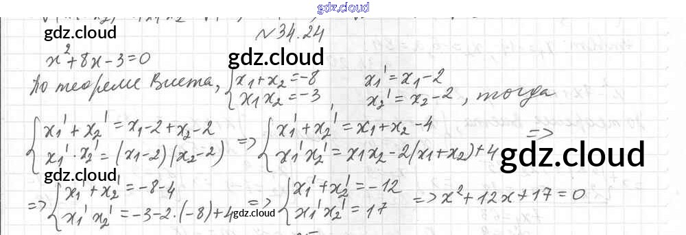 §34. Теорема Виета Ответы к Главе 6. Квадратные уравнения по Алгебре 8 класс Учебник Мерзляк Алгоритм успеха Углубленный уровень Вентана-граф