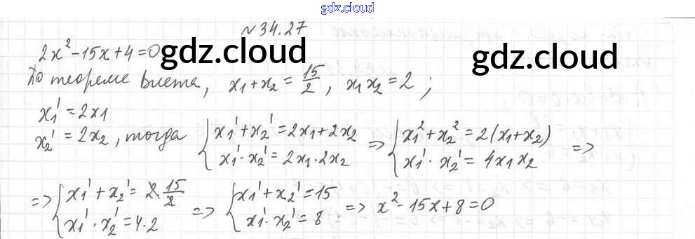 §34. Теорема Виета Ответы к Главе 6. Квадратные уравнения по Алгебре 8 класс Учебник Мерзляк Алгоритм успеха Углубленный уровень Вентана-граф