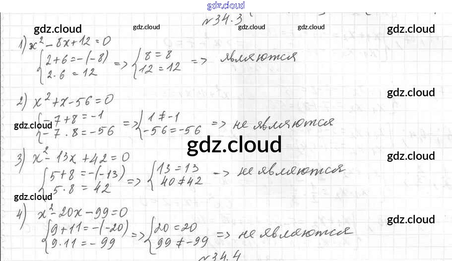 §34. Теорема Виета Ответы к Главе 6. Квадратные уравнения по Алгебре 8 класс Учебник Мерзляк Алгоритм успеха Углубленный уровень Вентана-граф