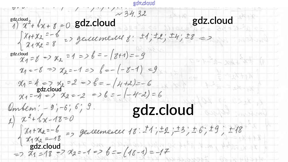 §34. Теорема Виета Ответы к Главе 6. Квадратные уравнения по Алгебре 8 класс Учебник Мерзляк Алгоритм успеха Углубленный уровень Вентана-граф
