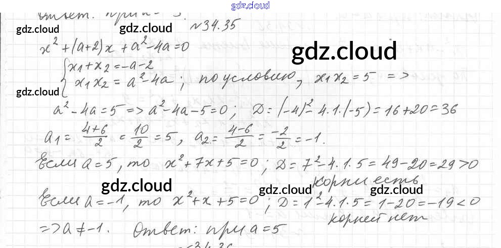 §34. Теорема Виета Ответы к Главе 6. Квадратные уравнения по Алгебре 8 класс Учебник Мерзляк Алгоритм успеха Углубленный уровень Вентана-граф