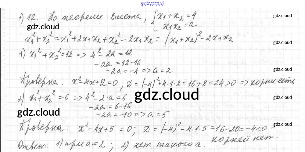 §34. Теорема Виета Ответы к Главе 6. Квадратные уравнения по Алгебре 8 класс Учебник Мерзляк Алгоритм успеха Углубленный уровень Вентана-граф