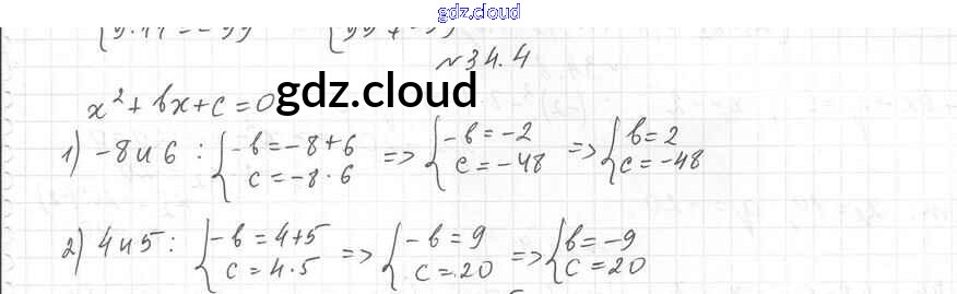 §34. Теорема Виета Ответы к Главе 6. Квадратные уравнения по Алгебре 8 класс Учебник Мерзляк Алгоритм успеха Углубленный уровень Вентана-граф
